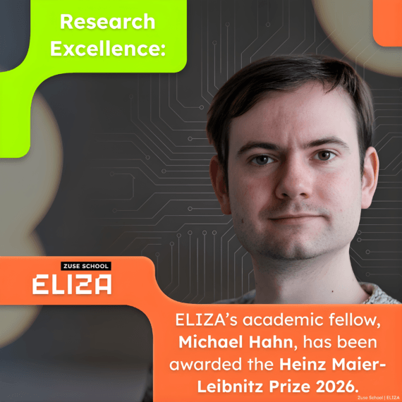 The Konrad Zuse School of Excellence in Learning and Intelligent Systems (ELIZA) is a graduate school in Artificial Intelligence (AI), funded by the German Academic Exchange Service (DAAD). Coordinated by Technische Universität Darmstadt, ELIZA is a national initiative that builds on the European Laboratory for Learning and Intelligent Systems (ELLIS). ELIZA links seven German ELLIS units across Berlin, Darmstadt, Freiburg, Heidelberg, München, Saarbrücken and Tübingen.